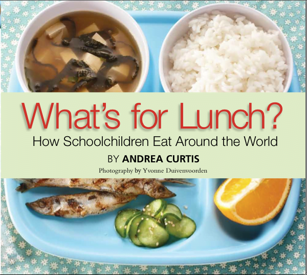 In What’s For Lunch Andrea Curtis reveals the variety and inequality to be found in the food consumed by young people in typical school lunches from thirteen countries around the world, including Japan, Kenya, Russia, United States and Canada, Mexico, Brazil, and Afghanistan. In some countries, the meals are nutritious and well-balanced. In others they barely satisfy basic nutrition standards. This book needs to be returned.Â